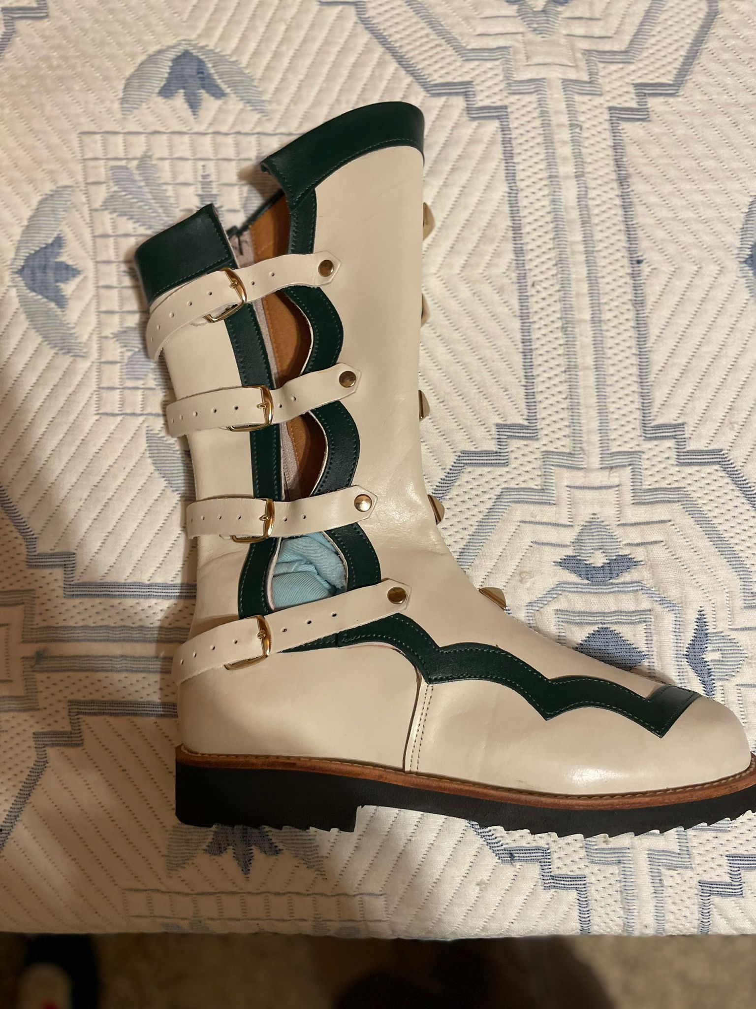 Vendo traje nuevo completo y regalo otra túnica que está más gastada ,medidas túnicas 100 larga y 59 ancha. Los zapatos son 41 para estrenar. El precio es 1150 euros. Y tengo aparte para vender : 1 capa 1,40 cm, 2 petos 82 cm y ancho 55, mayas y pantalones, cinturón, manguitos. Bolso precios negociables. Número de contacto 642527274